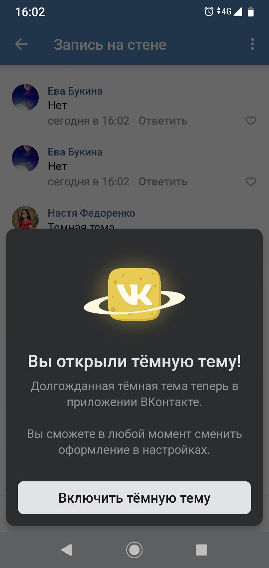 Как включить темную тему на Андроид ВК? Достаточно выполнить следующие условия: