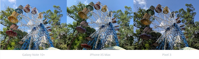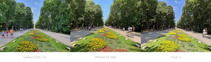 Здесь мы не можем выбрать победителя между Galaxy Note 10+ и iPhone XS Max – похоже, в этой сцене нет никаких значимых различий. Однако Pixel 3, испортил фото, недоэкспонировав и сделав все более желтым, чем это должно быть.