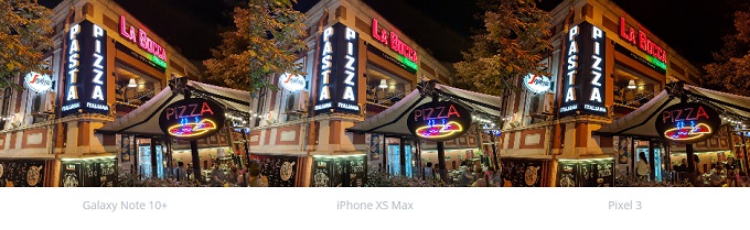 Galaxy Note 10+, так и Apple iPhone XS Max справились достойно в этих менее чем идеальных условиях, при этом iPhone выдавал более быстрые и чистые результаты. Фотография на Pixel 3 слишком lo-fi. Она не нужно желтая и излишне шумная.