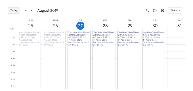 Время от времени я смотрю в свой Google Календарь и вижу кучу случайных приглашений на видеочаты с людьми, которых я никогда не встречал. Недавно моя коллега заметила, что ее календарь был заполнен приглашениями и прочим, которые автоматически появлялись в ее календаре, и сказала, что она выиграла бесплатный iPhone.