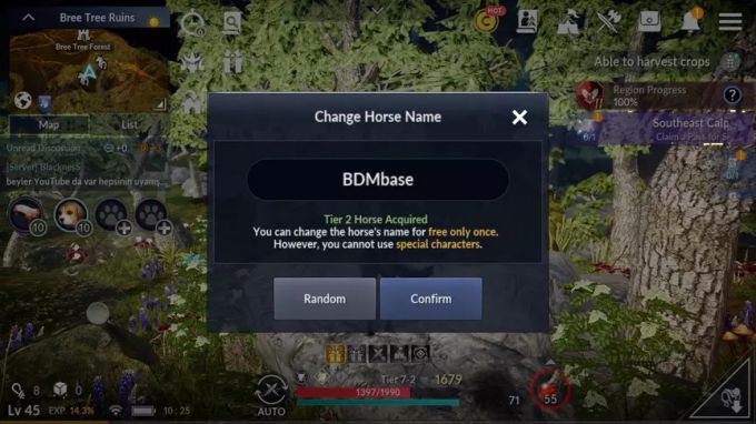 Если вам повезло и вы смогли успешно пройти тайминг-гейм появится окошко, где можно ввести имя коняшки. Однако существует рандомный шанс неудачи, кода даже после успешного завершения тайминг-гейм конь сбросит вас и убежит в закат.