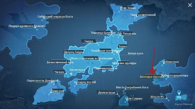 Шаг 2. Отправляйтесь в колледж Касселл. На карте мира вы увидите множество локаций. Нажмите на Кассельский колледж.