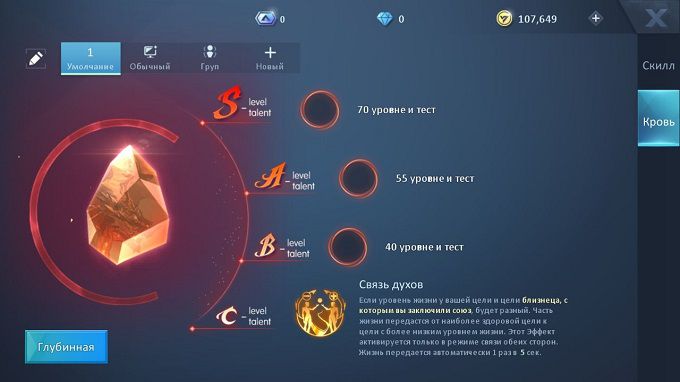 C-уровень таланта - Балет в снегу, урон от Ледяного шока повышается на 35%, эффект лечения теряется. На 5 раз Ледяного шока Танцора души замораживает врага на 3 сек. Песок времени, При каждом использовании скилла профессии добавляется эффект Ши Чжиша, который повышает вероятность крита на 4% Эффект длится в течение 10сек. Максимум можно наложить 5 раз. При накладывании этого эффекта оставшееся время не обновляется. Связь духов, если уровень жизни у вашей цели и цели близнеца, с которым вы заключили союз, будет разный. Часть жизни передастся от наиболее здоровой цели к цели с более низким уровнем жизни. Этот Эффект активируется только в режиме связи обеих сторон. Жизнь передается автоматически 1 раз в 5 сек.