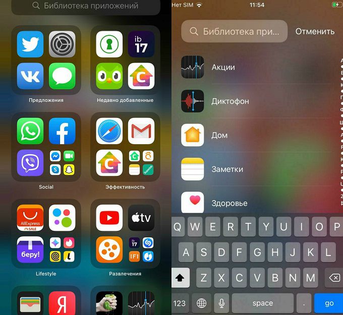 Теперь приложения автоматически сгруппированы по группам в «папки». Нажатием на строку поиска они выстраиваются в алфавитном порядке, что позволит быстро найти нужную программу по первым буквам названия.