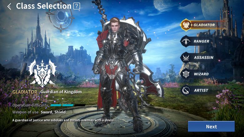 Гладиатор - боец ближнего боя, оснащен боевым топором и щитом. Для создания досупен только мужской персонаж. Сложность 2 из 3.