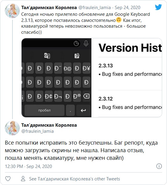 Свежее обновление клавиатуры от Google на IOS приподнесло неприятный сюрприз пользователям по всему миру. Те, кто обновил на свох Apple гаджетах Google keyboard до версии 2.3.13, заметили, что вместо привычных символов у них отображается крякозябра.