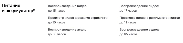Итак, тут установлен аккумулятор ёмкостью 2775 мАч, и Apple заявляет идентичное время в режиме воспроизведения видео - 17 часов.
