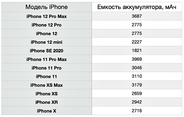 Для iPhone 12 Pro Max, с батареей в 3687 мАч, заявление время работы - 20 часов. Это сопоставимо с результатами iPhone 11 Pro Max, с емкостью в 3969 мАч.