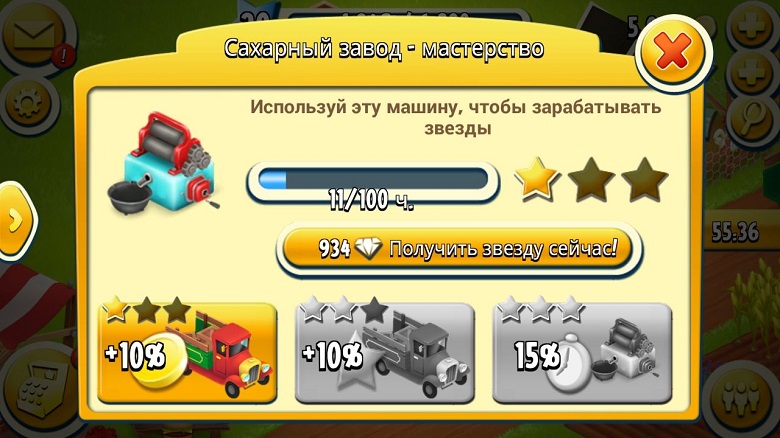 За алмазы можно улучшить производственные мощности на ферме. Улучшение производства позволит получить более дорогостоящий товар, даже дополнительные 10% к цене по которой вы продаёте продукцию положительно скажутся на балансе фермерского бизнеса.