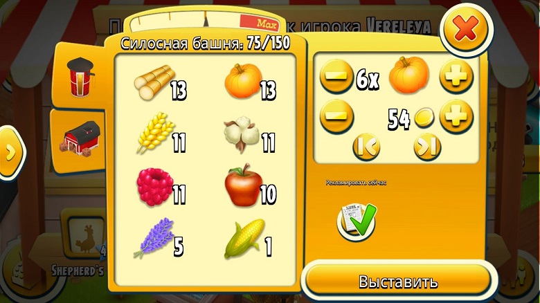 Для эффективной рекламы выбирайте ценные предметы, чтобы игроков заинтересовало именно ваше объявление. Также хорошим ходом будет попросить помощи с заказами, перед тем как запустите рекламу, тогда люди, которые придут к вам на ферму по объявлению смогут принести дополнительные монеты.