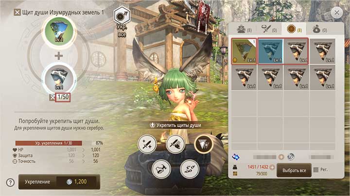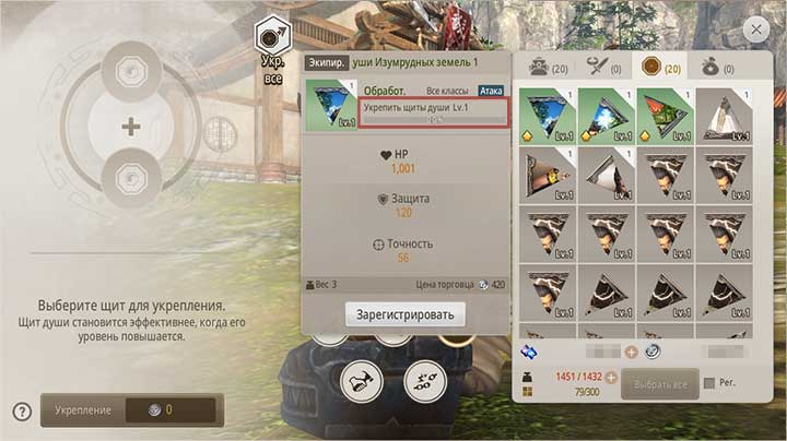 1) Перейдите в меню «Улучшение щитов души» в жаровне.