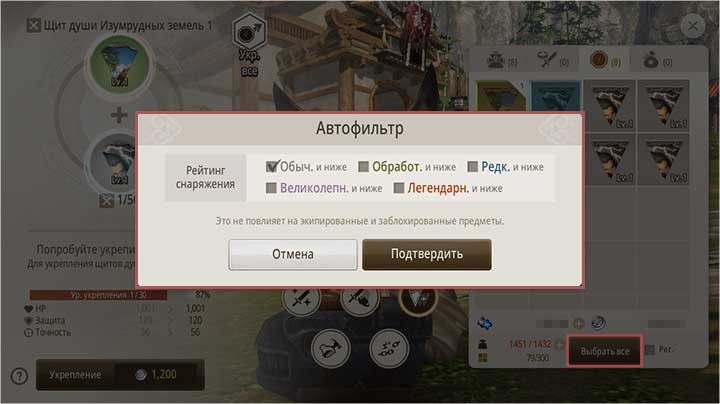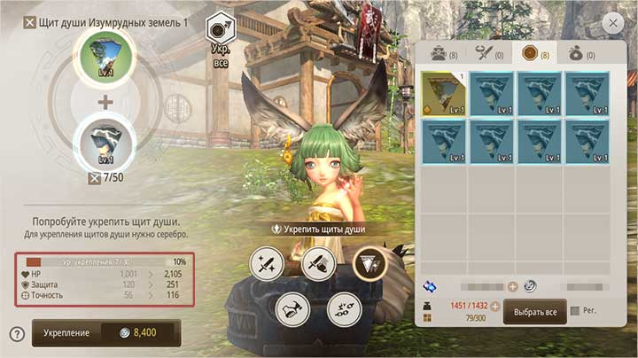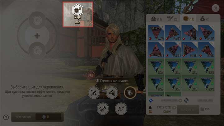 ① Выберите верхний вариант «Укрепить все», чтобы одновременно укрепить несколько щитов души.