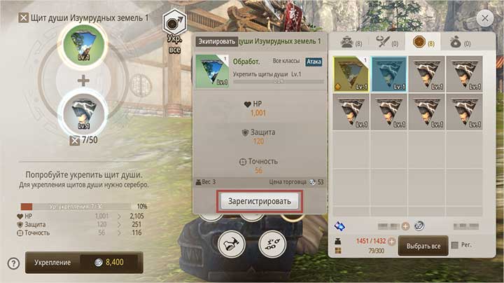 3) Нажав кнопку «Авторегистрация» после выбора основного щита души, вы автоматически зарегистрируете доступные материалы.