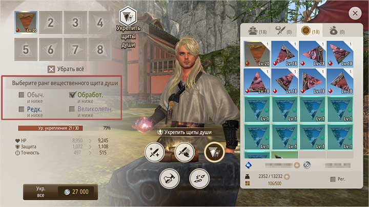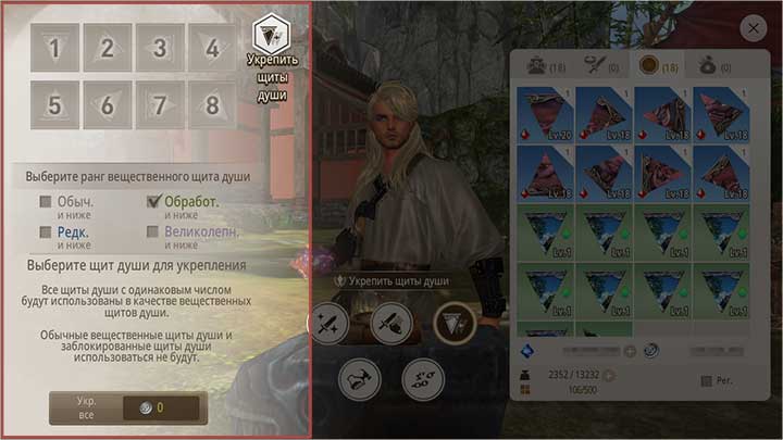 ② После выбора ранга вещественного щита души все щиты души этого ранга с одинаковым числом будут использованы в качестве материала.
