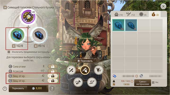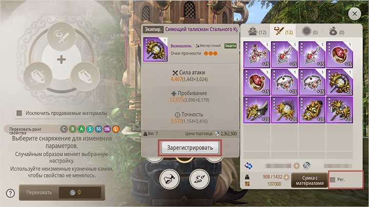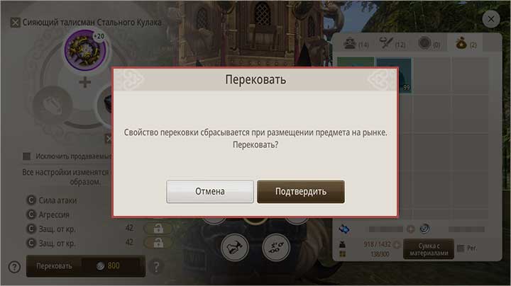 ③ Свойства перековки предмета, выставленного на продажу на рынке, сбрасываются, так что тщательно выбирайте снаряжение для перековки.