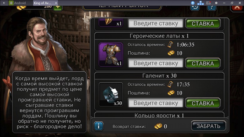 King of Avalon: Руководство по торговле. Торговая площадь, черный рынок и ставки на аукционе