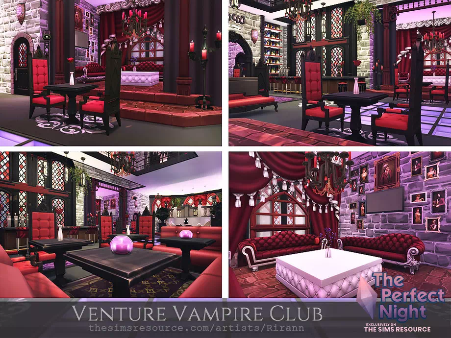 Вам не дают спокойно спать лавры графа Дракулы? Но что делать если ваш Сим заядлый тусовщик и не мыслит своей жизни без вечеринок? Проще простого! Нужно всего лишь скачать и установить в игру наш новый мод объектов Вампирский клуб - Venture Vampire от Rirann к Симс 4.
