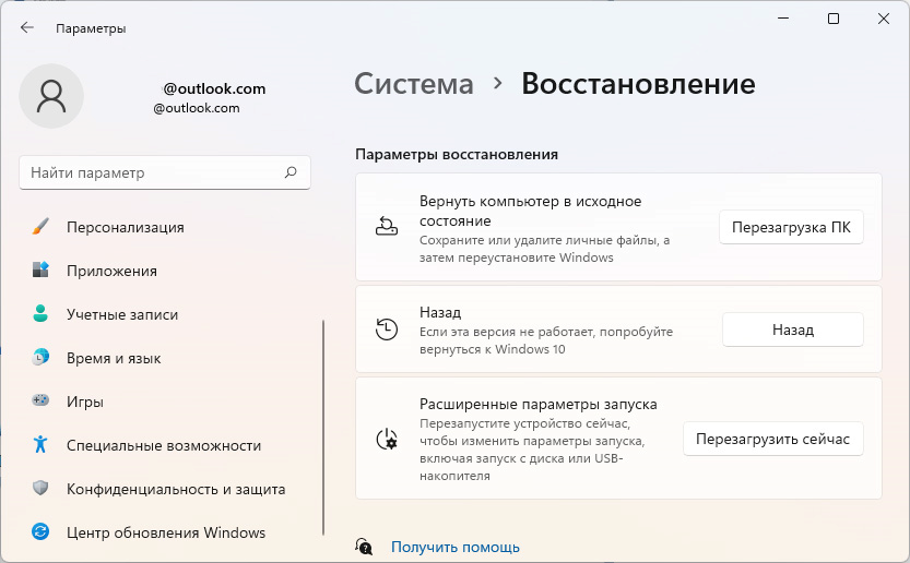 Если у вас функция "Назад" не доступна, скорее всего вы удаляли папку Windows.old после обновления системы или устанавливали чистую Windows 11 с флешки. В таком случае откат к предыдущей версии Windows 10 с сохранением параметров без костылей не возможен.