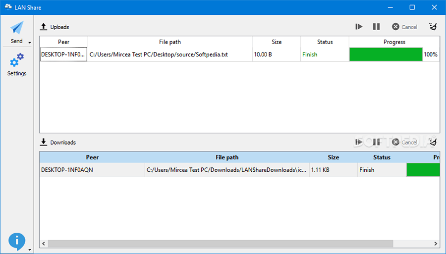 Свежий дистрибутив LAN-Share можно загрузить отсюда. После загрузки приложения вам необходимо сделать его исполняемым с помощью вашего файлового менеджера. Графический интерфейс LAN-Share достаточно прост, вам просто нужно нажать кнопку «Отправить», выбрать нужный файл, а затем кликнуть на имени получателя, чтобы начать обмен файлами.