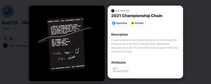 - Вы сразу получите коллекцонную цепочку и она будет отображаться в вашем профиле на rainbow.me, откуда можно перейти на OpenSea и увидеть его в своей коллекции.