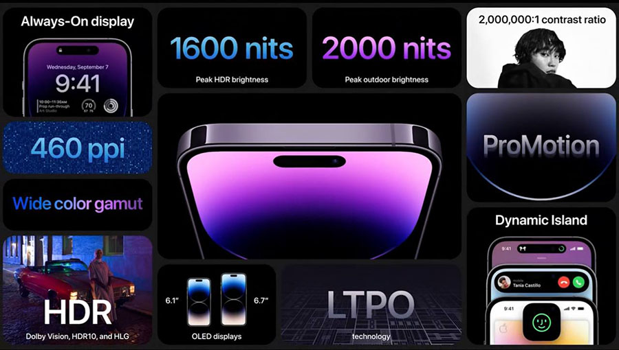) получили новый, уменьшенный вырез в экране и процессор Apple A16. Камера теперь 48-мегапиксельная.