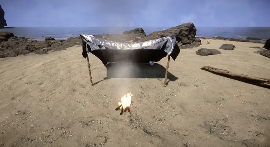 Но прежде, чем столкнуться с врагами, придётся немного "повыживать". Разбить палатку, нарубить дров, развести костёр и приготовить еду. Так как у вас есть Кельвин, рутинные задачи упрощаются, он может добывать еду, рубить дрова и заранее обнаруживать врагов. А вот биться он не любит, поэтому придётся полагаться на собственные силы, пока Кельвин будет прятаться за ближайшим валуном. Система крафта тут максимально приближена к реалистичной, деревья будут падать на вас, если станете под не самым удачным углом во время рубки. А окна придётся вырубывать топором. Чем-то это напоминает Valheim, только будет ещё немного жёстче.