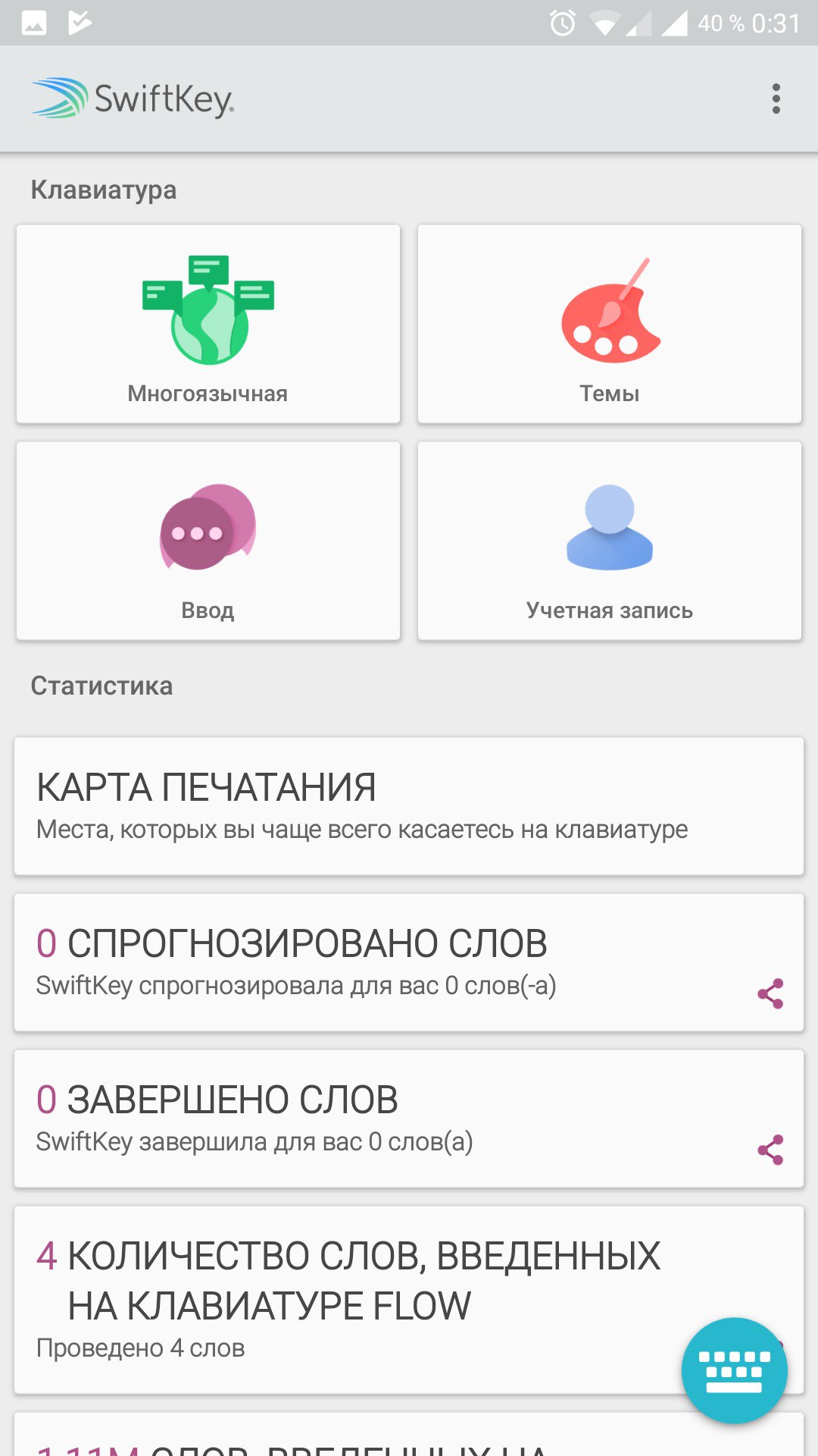 - сколько слов вы начали печатать и завершили с помощью клавиатуры;