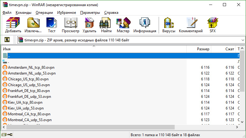 - Скачайте архив timevpn.zip с конфигурационными файлами. Их необходимо распаковать и перенести на ваш гаджет.