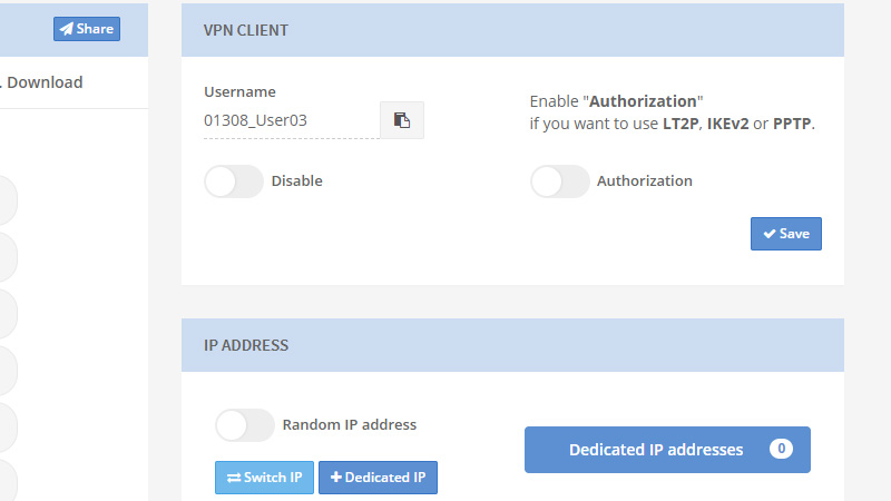 Также по желанию есть гибкие настройки по смене IP, включение/отключение протокола LT2P, IKEv2 или PPTP, а также самого клиента.